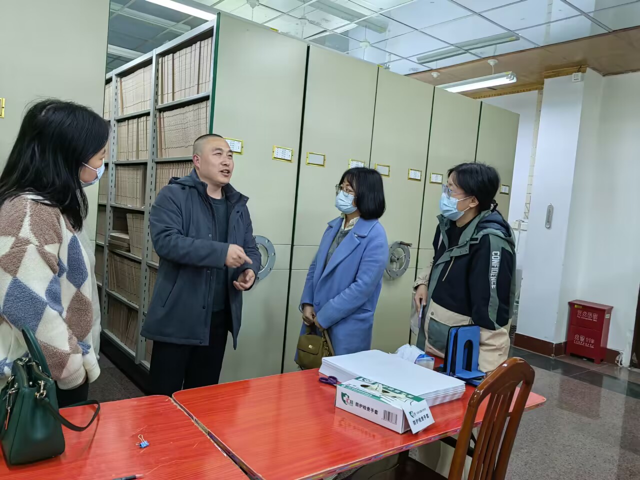 王旭带领蒋萦一行参观档案库房