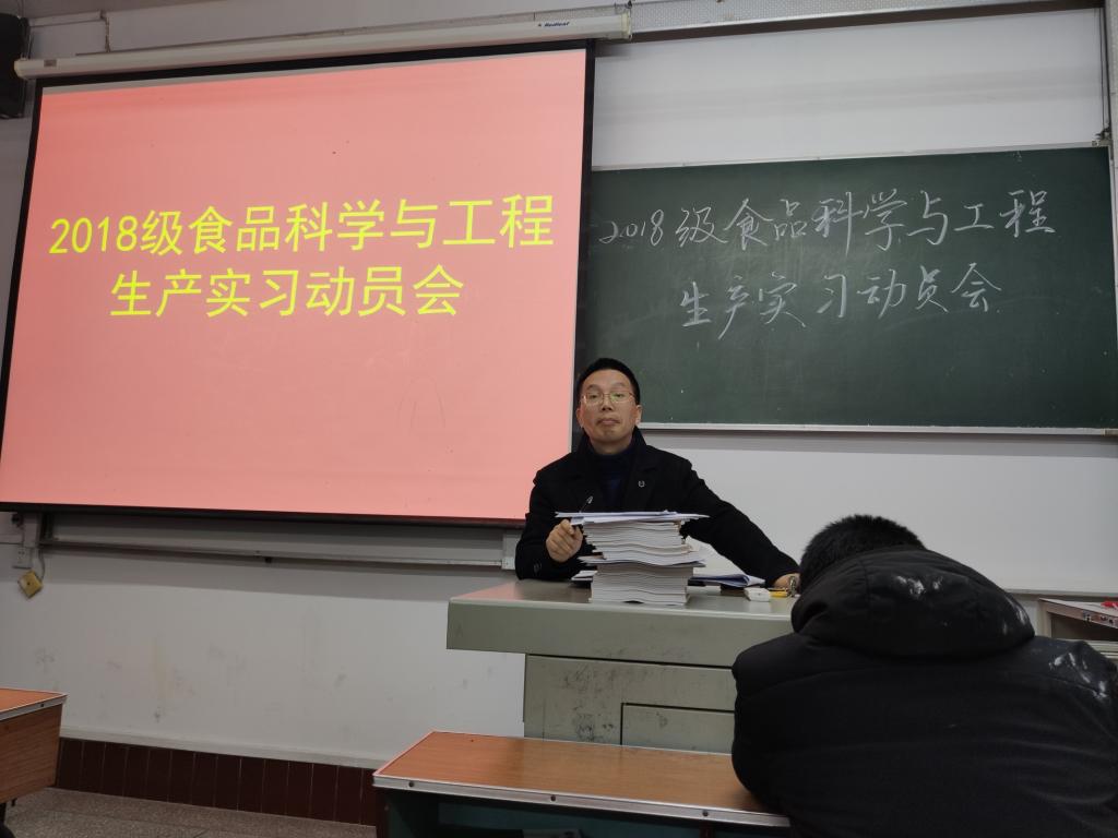 (本网讯 程超/文 朱玉昌/图)12月2日晚,2018级食品科学与工程专业生产实习动员大会在4303教室召开。学院副院长周志、办公室主任陈根洪、食品科学与工程系主任程超、实习带队老师朱玉昌、班主任陈杰及食品科学与工程专业全体教师参加了会议。