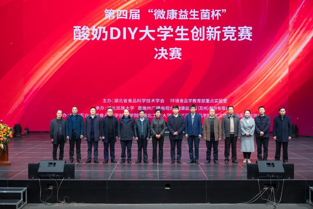 本网讯(文字 余胡铃澜 摄影 李经玺 余胡铃澜)12月11日,第四届 “微康益生菌杯”酸奶DIY大学生创新竞赛总决赛在恩施州电视台演播厅成功举办。恩施州副州长高敬佩,学校副校长李军,湖北省食品科学技术学会理事长潘思轶,微康益生菌(苏州)股份有限公司市场总监方端,华中农业大学食科院党委副书记向异之,bat365官网宣传部、教务处、学工处、校团委等职能部门负责人出席大赛开幕式。湖北大学、长江大学、武汉商学院等十多所高校领导、老师带队现场观摩本次大赛。