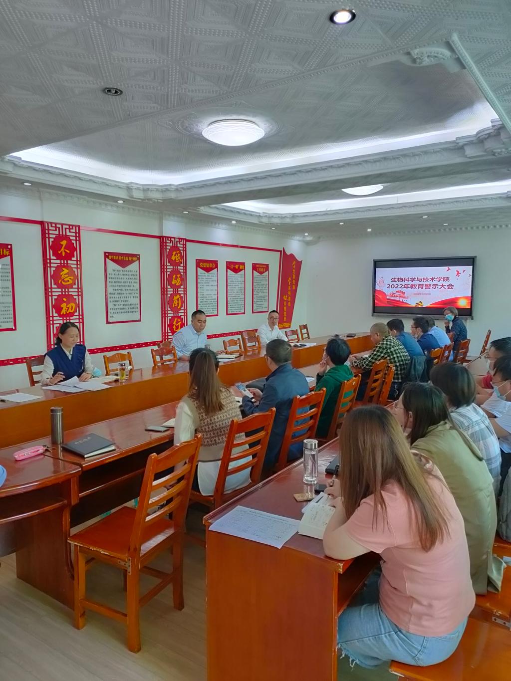 本网讯 9月29日,根据《bat365在线中国登录入口2022年党风廉政教育宣传月活动方案》的要求,为大力弘扬清廉守正、当担实干之风,生科院在会议室召开全体教职工大会,开展警示教育活动。学院党总支副书记彭璟主持会议。