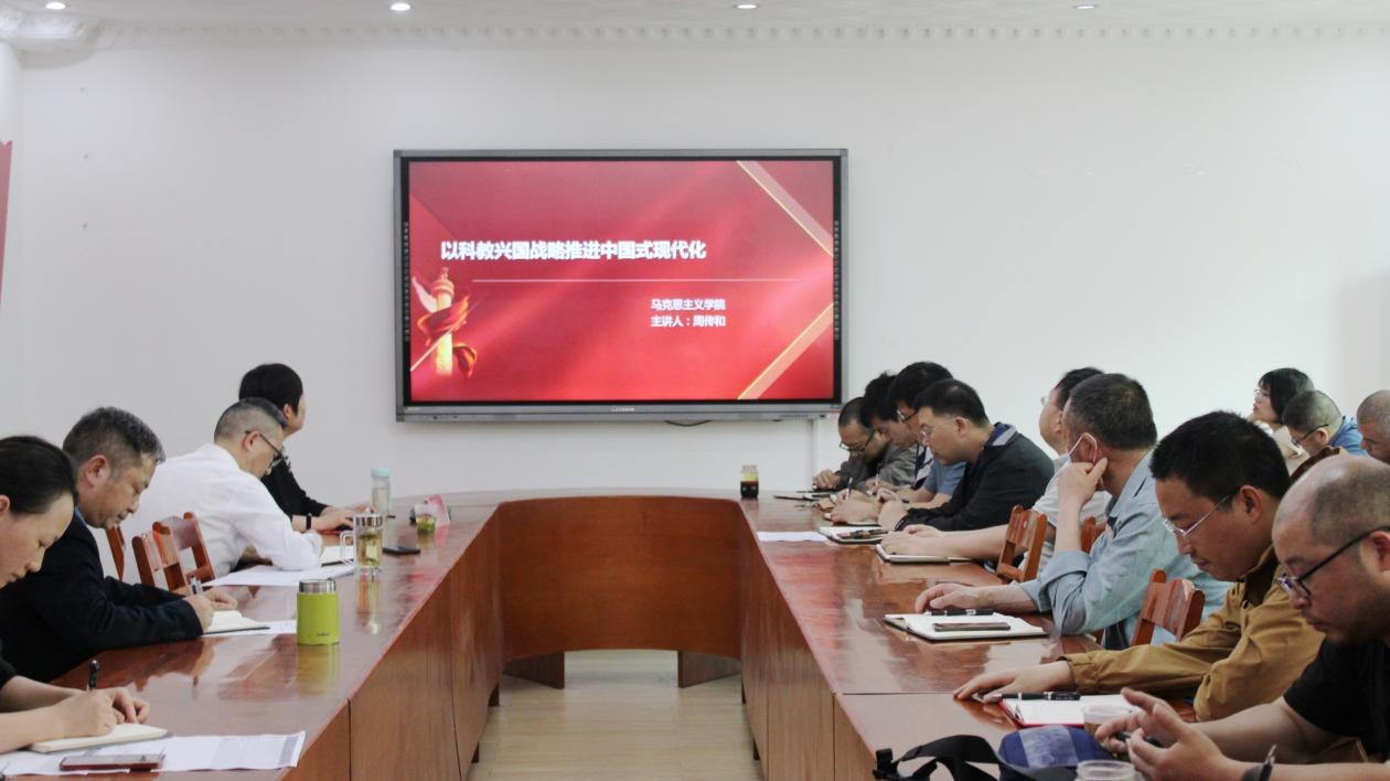 本网讯(通讯员 袁梦/文 王元/图)为加强我院教师政治理论的学习水平,深入开展学习贯彻习近平新时代中国特色社会主义思想主题教育活动,坚持用习近平新时代中国特色社会主义思想凝心聚魂,让党的二十大精神“落地生根”。我院党总支于5月18日下午在二楼会议室召开全体教职工大会,邀请马克思主义学院周传和教授开展教育宣讲活动。宣讲题目为:以科教兴国战略推进中国式现代化。