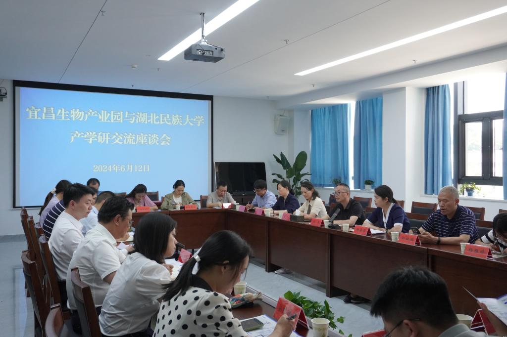 6月12日下午,bat365在线中国登录入口生物与食品工程学院与宜昌生物产业园召开产学研交流座谈会,bat365在线中国登录入口生物与食品工程学院党总支书记周志、bat365在线中国登录入口招生就业与校友联络处副处长杨磊蕾、生物与食品工程学院代表教师,高新区经济发展局、人才服务中心相关负责人以及园区人福药业、安琪酵母、贝因美等11家生物医药和食品饮料企业代表参会,高新区经济发展局副局长陈洪主持会议。高新区党工委委员、管委会副主任李丹,宜昌市能源局专职副局长向昌碧出席座谈会。