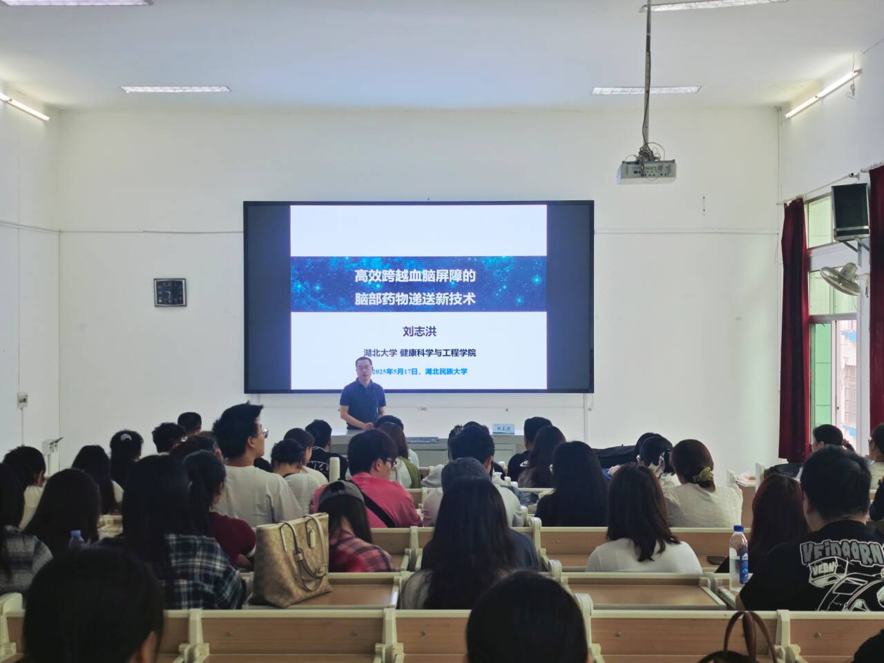 (本网讯 王智勇、孙甜/文,贺金萍、孙甜/图)2025年5月17日,国家杰出青年科学基金获得者、科技部“创新人才推进计划”及“万人计划”科技领军人才、湖北大学副校长刘志洪教授应邀莅临bat365官网作题为《高效跨越血脑屏障的脑部药物递送新技术》的学术讲座。本次讲座由bat365在线中国登录入口副校长刘伦志教授主持,bat365官网教师代表及生物与食品工程学院、化学与环境工程学院硕士研究生聆听讲座。