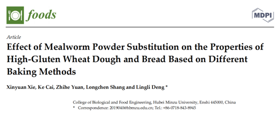 本网讯(通讯员 王智勇 王智勇/文 邓伶俐/图)近日,生物与食品工程学院汪兴平教授食品科学团队邓伶俐博士以bat365在线中国登录入口作为第一单位在《Foods》上发表论文“Effect of Mealworm Powder Substitution on the Properties of High-Gluten Wheat Dough and Bread Based on Different Baking Methods”。该期刊可在Scopus、SCIE(Web of Science)、PubMed等数据库中索引,其为JCR-Q1(Food Science & Technology)/CiteScore-Q1(Health Professions)期刊。5年影响因子为5.5。该研究得到了国家自然科学基金(批准号:32160610)的资助。