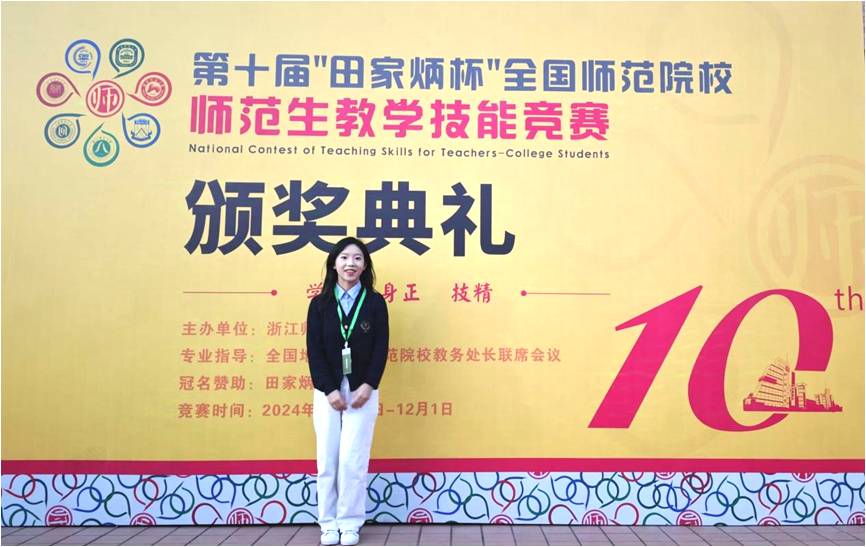 (本网讯)2024121号,第十届“田家炳杯”全国师范院校师范教学技能竞赛在浙江师范大学圆满落幕经过激烈角逐,我院夏欣同学入围决赛,并在比赛中表现出色,获得全国二等奖的好成绩。