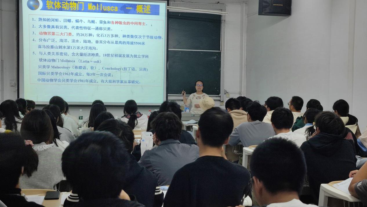 公开课环节,李玲老师进行了《动物学Ⅰ(无脊椎动物)》软体动物门章节的教学。李玲老师联系学生生活实际、插入科学家的前沿科学研究、应用丰富多彩的多媒体资料,将复杂的动物学知识变得有趣、易于理解,激发了学生们的学习兴趣和探究欲望。