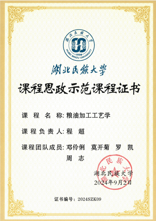 近日,学校公布了2024年度校级本科课程思政示范课程名单,我院程超老师的《粮油加工工艺学》和李玲老师的《动物学II(脊椎动物)》获批校级课程思政示范课程。