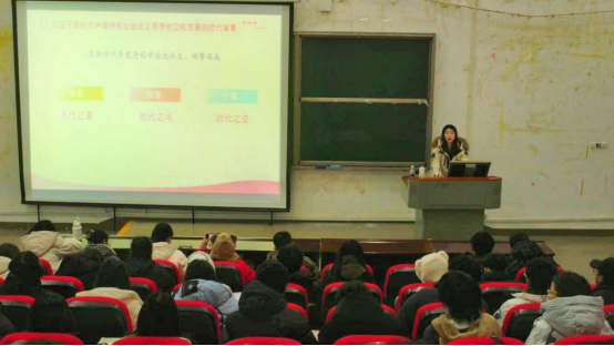 授课伊始,张鑫媛对习近平新时代中国特色社会主义思想创立和发展的时代背景、主要内容和科学体系进行讲述,说明其内涵博大精深、系统全面、逻辑严密。新时代十年非凡历程既是一个在伟大时代和实践中创立科学理论历史进程,也是一个将“彻底的理论”转化为“物质力量”历史进程。她讲述新时代十年来,在习近平新时代中国特色社会主义思想科学指引下我们党取得的重大成就和实现的伟大变革,同时指出新时代的青年应该深刻理解学习“六个必须坚持”,将这一思想的世界观、方法论和贯穿其中的立场观点方法转化为自己的思想武器。