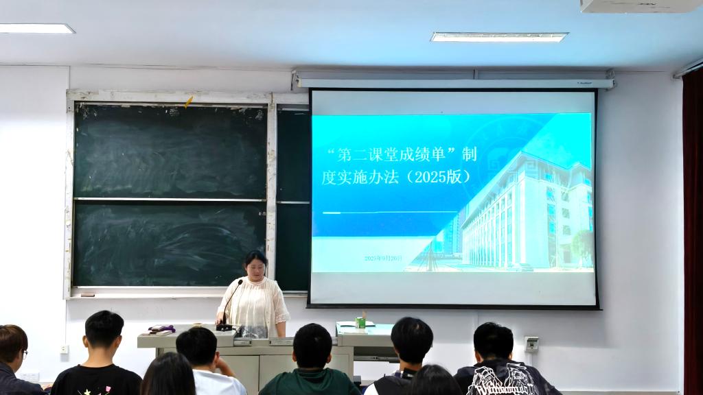 为深入贯彻落实立德树人根本任务,构建德智体美劳全面培养的教育体系,9月20日晚上,我院在4101和4202教室分别开展了“第二课堂成绩单”制度实施办法(2025版)专题解读会。本次解读会主要面向我院2025级新生,由我院团委书记程琴主讲。