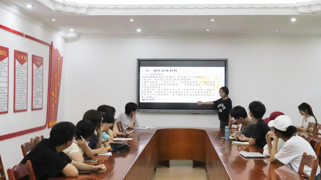 本网讯(通讯员 王元/文 通讯员 黄慧娴/图)为使我院团队更好地了解报账及新闻投稿的相关事宜,推动暑期社会实践有条不紊地展开,6月21日下午17:45,我院团总支在二楼会议室召开2022年暑期社会实践后期培训大会,我院社工部部长曹子墨、副部长刘宇阳,各团队队长及部分成员参加此次会议,本次大会由刘宇阳主持。