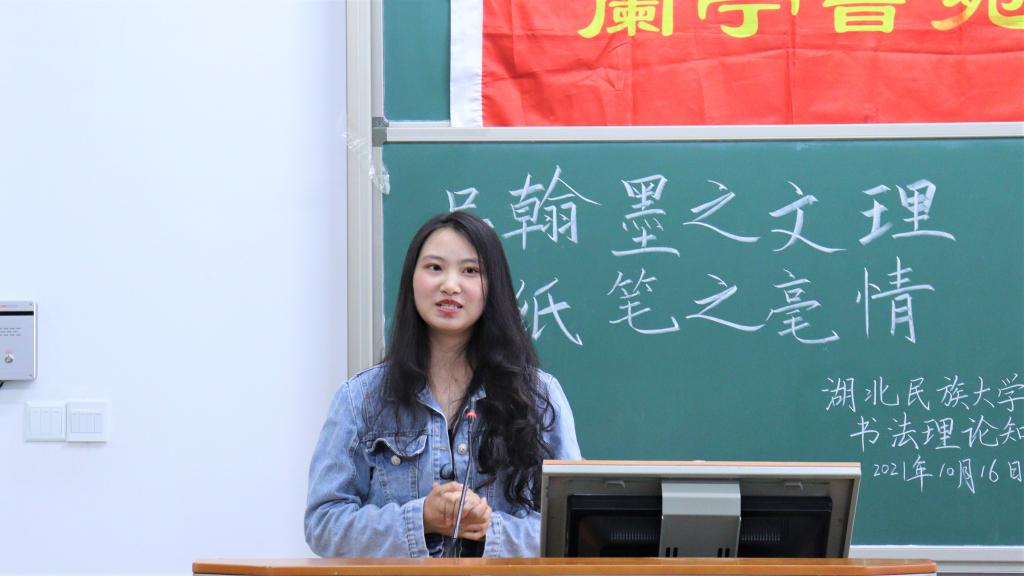 本次活动旨在让当代大学生更进一步的了解中华传统书法文化,从理论开始了解,为将来的书法书写做铺垫,感受书法的魅力,提高文化艺术素养,并通过此次活动来锻炼兰亭书苑干事的独立自主能力。至此,活动圆满结束。(责任编辑 李元利)