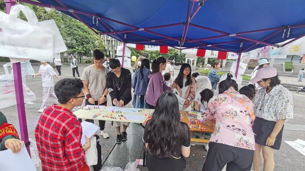 活动流程包括“环保知识大作战”“以物换物”“你扔我接”和“环保DIY”四个环节。参与者需通关两个及以上环节并获取盖章贴纸方可完成任务获得奖励。为更好推广该活动主题“环保我先行”,在“你扔我接”游戏环节中使用的纸球和纸篮都由废旧报纸制作,该环节有利于增强学生可循环利用的意识,也考验两个参与者之间的默契度,需要接住五个球进篮才能顺利通关。与此同时场上的“知识大作战”知识竞赛答题环节也进行得热火朝天,记者对一位参与者进行采访,他回答道“知识竞答环节很有意义,很开心在轻松的环保知识竞答中了解到更多环保知识和方法。”本次活动通过游戏和知识竞赛两种方式展开,四个环节有序进行,让场上氛围不断高涨,欢乐一片。