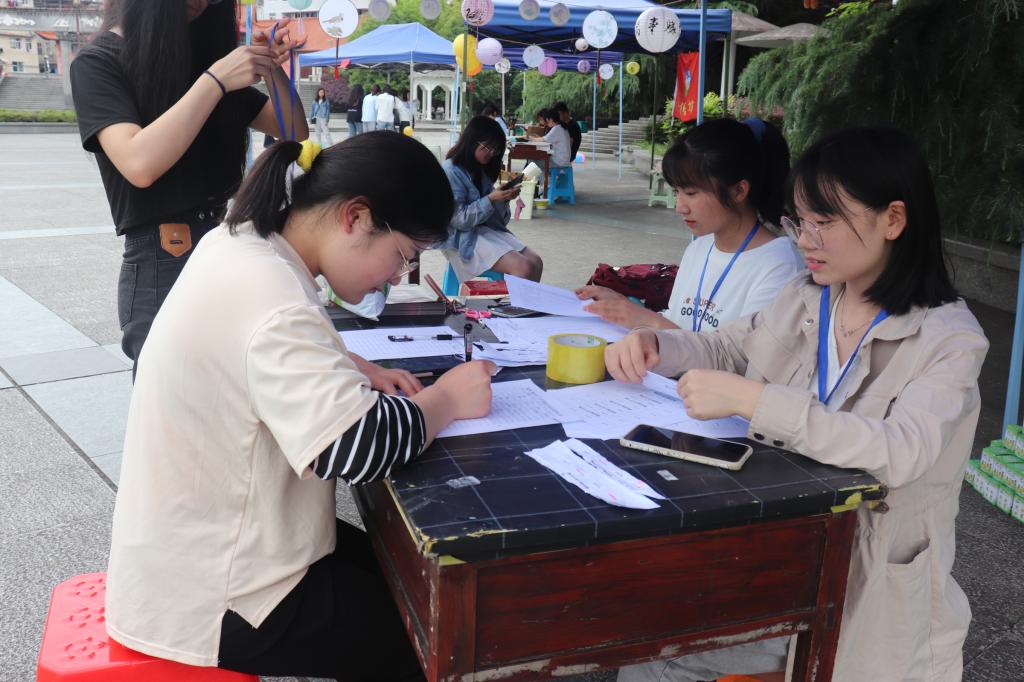 本网讯(通讯员 李元利/文 余俊兰/图)为了推广汉字教育,用文字表达深沉的爱,bat365官网兰亭书苑于5月20日下午两点,于大学生广场以“纸短情长,大声说爱”为主题开展本次活动。近两百名学生参加活动。