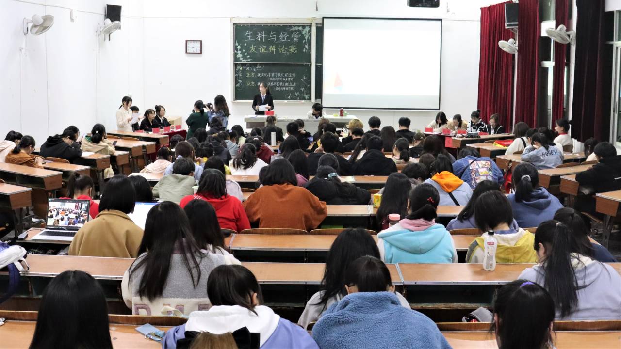 本网讯(见习通讯员 唐欣新 肖婷婷/文 柯佳译/图)4月2日晚,我院联合经济与管理学院在我院4202教室开展以“梗文化是否丰富了我们的生活”为辩题的友谊赛。我院优秀辩手李雨盈、陈婕茹及经管院优秀辩手吕晓慧、李梦池担任评委。
