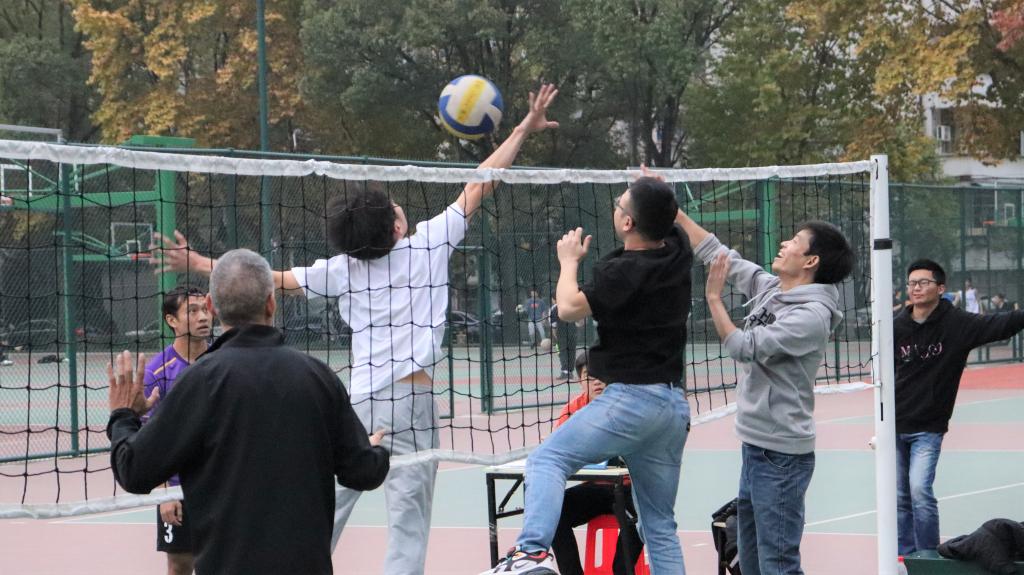 本次活动采取自由组队,以气排球比赛的形式进行。赛制采用淘汰制,决出最强队伍与教师比赛。比赛分为男女教师两场比赛同时进行,从下午2点开始,比赛场上,选手们个个精神饱满,热情高涨,严肃认真的对待每一场比赛。比赛在裁判员的一声哨下拉开序幕,教师和学生都奋力比赛,打球的气氛十分热烈,男女双方比分接近持平,伴随着比赛的进行,两边的三局比赛,一个个精彩的拦网、扣球不断出现。经过激烈的角逐,无论是学生还是老师都取得了优异的成绩。观赛教师罗祖友说到:“我们来打气排球,不只是为了给生活添加一份乐趣,更重要的是可以强身健体。”