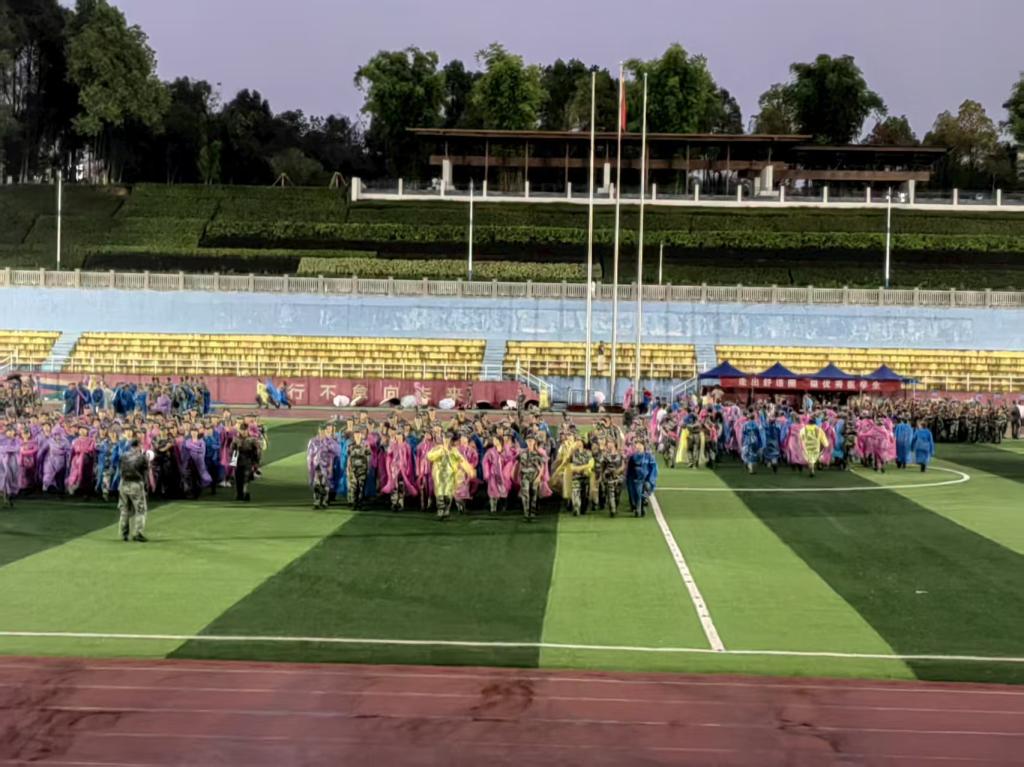 当军训遇上雨天,别样的训练场上绽放出更加绚烂的色彩。 看,训练场上,新生们英姿飒爽,目光如炬。雨水中,倒影出迷彩戎装的挺拔如松,站军姿,昂首挺胸,岿然不动。踢正步,步伐整齐,落地有声; 听,一,二,三,四,口号声,气势如虹,每一次摆臂、每一次转身都逐渐有了军人般的坚毅与果敢,迷彩青春,无惧风雨,这才是大学生该有的模样