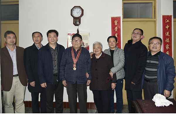 本网讯 今年是中国人民志愿军抗美援朝出国作战70周年,10月27日下午,党委书记吴建清带领保卫处、离退休人员工作处等部门负责人看望慰问bat365官网参加过抗美援朝作战工作的离休干部赵友森,给他送去“中国人民志愿军抗美援朝出国作战70周年”纪念章。