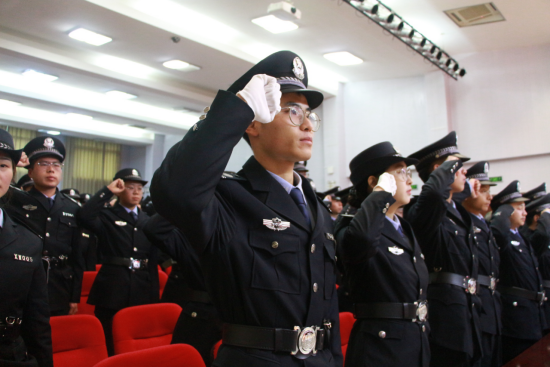 校园秩序科科长谢整文宣读24届校卫队成立文件并任命李昌顺为校卫队队长;郭智斌为校卫队授旗并为代表颁发聘书。李昌顺代表校卫队发言:一是提高队员整体军事素质;二是完善部门的规章制度;三是明确分队任务,加强内部管理。向政对校卫队的发展寄语,他表示,校卫队的任务艰巨、辛苦但很光荣。对校卫队提出了三点期望:一是砥砺家国情怀;二是锤炼品德修养;三是练就过硬本领。