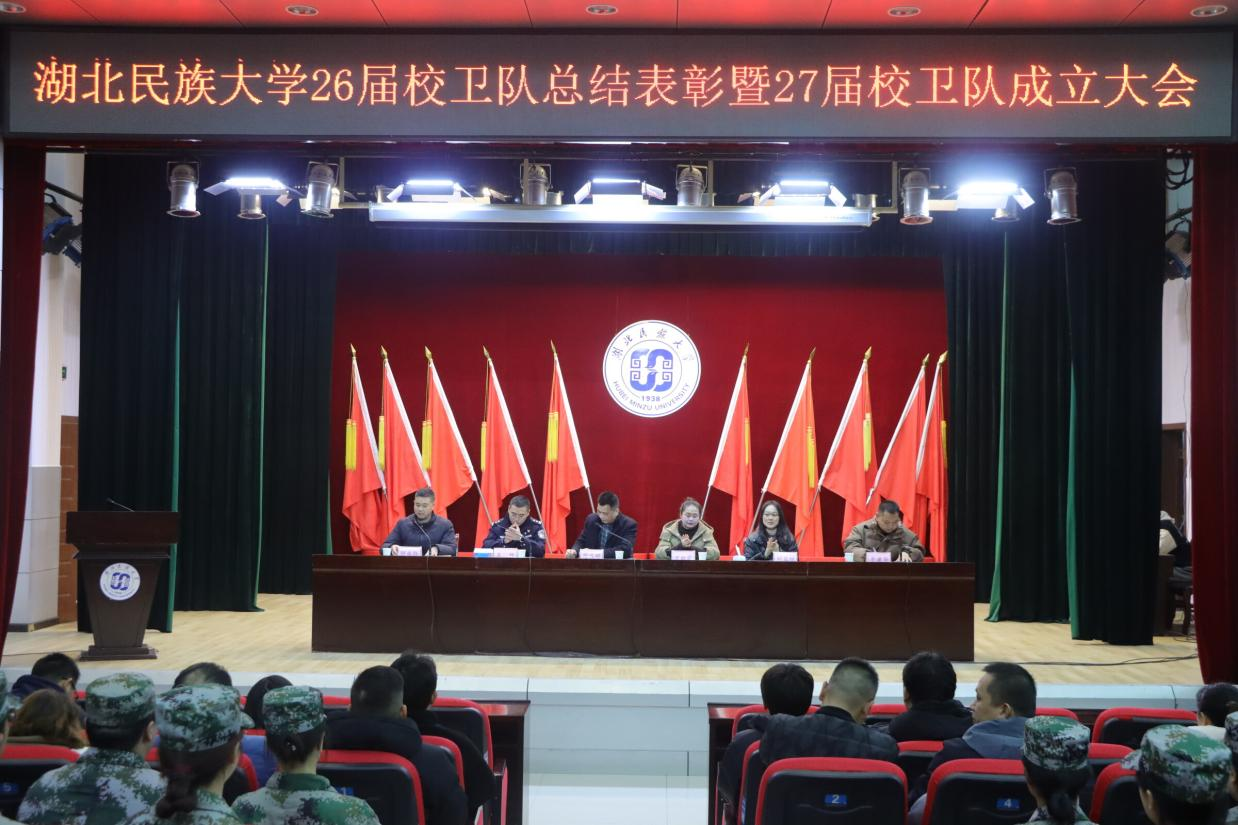 12月21日,bat365在线中国登录入口第26届校卫队总结表彰暨第27届校卫队成立大会在行政楼一号会议室隆重举行。学校党委委员、学工部长方云霞,保卫工作部(武装部)部长周代明,驻校民警王烁,校团委副书记刘亚琼,保卫工作部(武装部)副部长李建华出席会议,与会的还有各学院学生科负责人,保卫工作部全体职工,以及学校各社团负责人。会议由保卫工作部(武装部)副部长何永红主持。