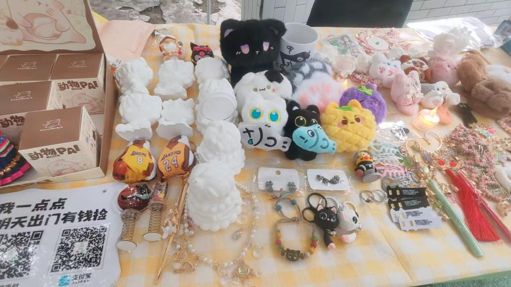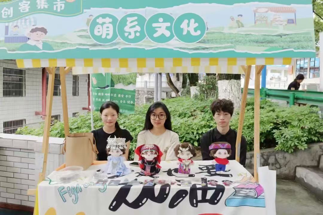 在特色主题区,有穿着民族服饰、配有民族特色饰品的玩偶、有根据动漫人物1:1还原的造型、有健康搭配的可口便当,还有纹样传统美学、展现地域文化的周边产品,让师生情不自禁的前来关顾。