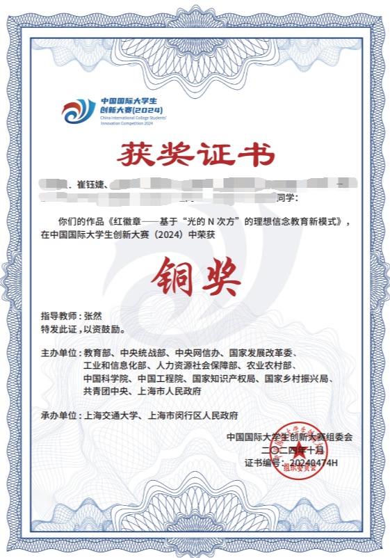 从学业筑基到双创破局,崔钰婕以“红徽章”项目为核心载体,在红色文化传播与创新创业领域持续突破,用多项赛事荣誉、实践成果与经验分享,生动诠释了“朝乾夕惕,功不唐捐”的内涵,成为兼具扎实专业能力与突出双创素养的青年榜样。