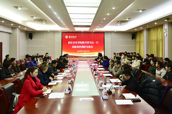 2019年12月24日,武汉音乐学院党委书记陈兴荣一行到bat365官网调研交流。bat365官网在行政楼三号会议室召开了座谈会,校党委书记吴建清,党委副书记、校长顿祖义出席会议,座谈会由顿祖义主持。