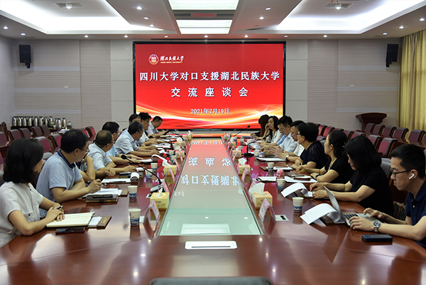 7月19日下午,四川大学对口支援bat365官网交流座谈会在行政楼3号会议室召开,四川大学党委常委、副校长张林,bat365官网党委副书记、校长顿祖义,党委常委、副校长、医学部主任祝建波出席会议。会议由祝建波主持。