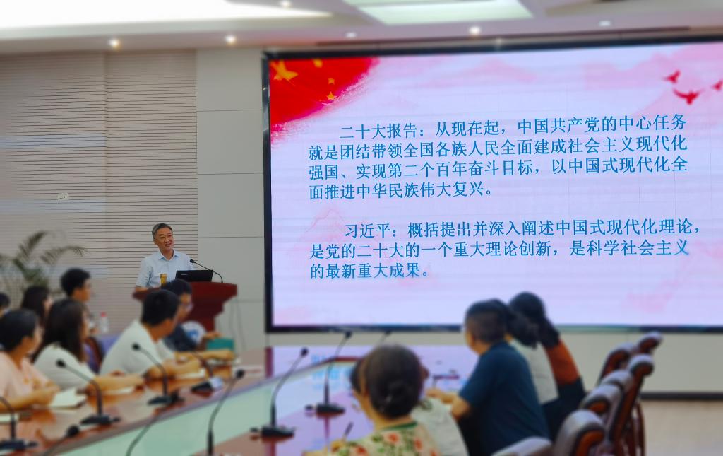 顿祖义以《如何理解中国式现代化》为题,从“中国式现代化与中国共产党”“中国式现代化与全面建设小康社会”“中国式现代化与中国特色社会主义”“中国式现代化的中国特色与本质要求”“中国式现代化与西方现代化”等五个维度阐释如何理解中国式现代化。他强调,中国式现代化是中国共产党经过长期探索实践作出的历史选择和取得的历史成就,是我们党在理论和实践上的重大创新。中国式现代化是中国共产党领导的社会主义现代化,既有各国现代化的共同特征,更有基于自己国情的中国特色。从现在起,中国共产党的中心任务就是团结带领全国各族人民全面建成社会主义现代化强国、实现第二个百年奋斗目标,以中国式现代化全面推进中华民族伟大复兴。