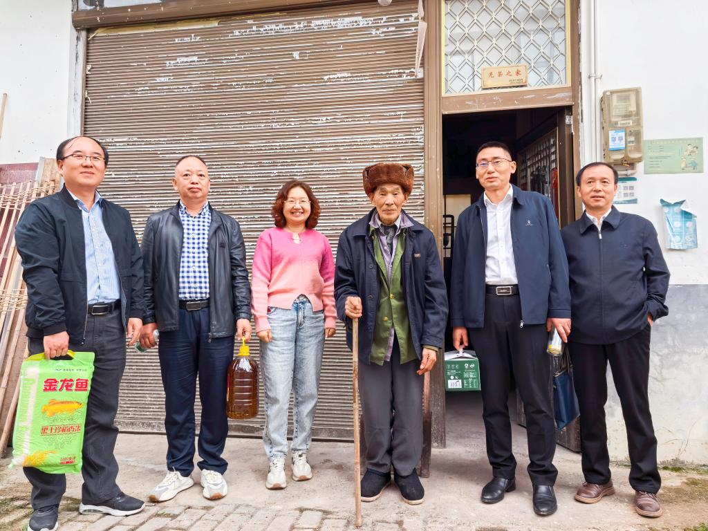 在学校乡村振兴驻村工作队同志的带领下,学校党委常委、总会计师余来同志和部分党员走访了96岁高龄的解放战争革命老兵蒋年丰同志,关切询问老人身体状况,查看老人居住环境、生活保障设施等,宣讲了党的惠民政策,传递组织温暖。