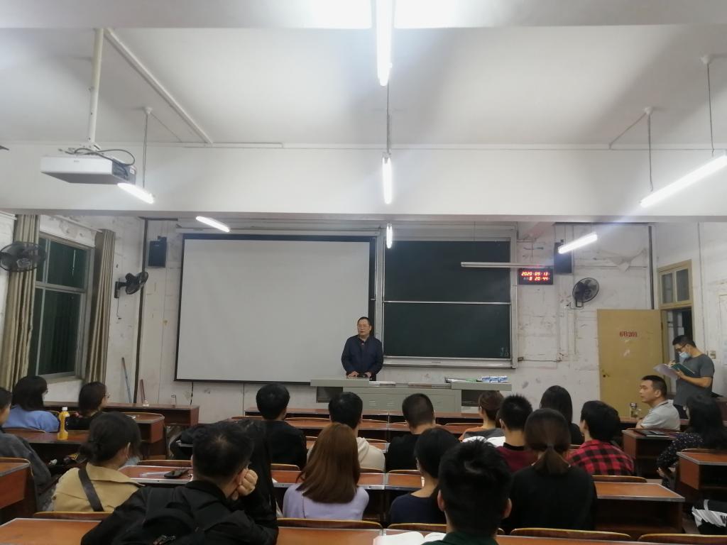 活动伊始,由粟登平老师讲解外国语学院学生管理规定及“六防”安全知识,希望同学们认真学习并遵守纪律,提高安全意识。与此同时,陈斌副院长对同学们提出了三点要求,一是希望同学们尊敬师长,团结同学,完成辅导员或者老师交予的任务,积极向优秀的同学学习;二是希望同学们培养良好的学习习惯,设立学习目标;三是希望同学们热爱生活,规律作息,加强身体锻炼,同时还要保持良好的心态。紧接着是骆贤凤院长讲话,他首先与同学们分享外国语学院的历史;随后他指出,努力与成就成正比,对同学们提出“四个一”的要求,即每天阅读一篇文章,每天背一篇文章,每天听一篇文章,每天写一篇作文。此外,他还提到,大三是重要的分水岭,每个同学都应该明确努力的方向以及学习的兴趣,提高自身综合能力。鼓励同学们积极参加活动,以主人翁的姿态加入外国语学院这个大家庭,多与老师、同学进行交流。最后,由周代明书记进行总结。他希望同学们珍惜当下,放眼未来,抓住机会,全面提升自身能力素养,充分展示自身才能;同时端正学习态度,真正拥有真才实学。