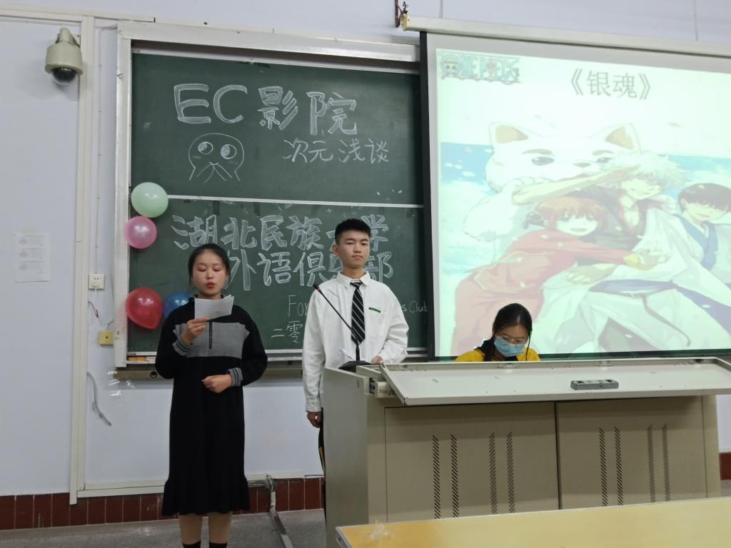 时间:2020-11-16 编辑:学生科 点击:本网讯(记者杜婷婷 覃松燕)为丰富大学生课余生活,展现外语独特魅力,外语俱乐部于11月13日晚19:00在外国语学院6402教室举办以“次元浅谈”为主题的EC影院活动。此次活动面向bat365官网全体师生。