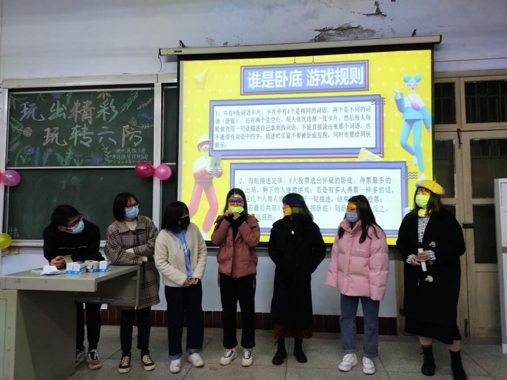 时间:2020-11-30 编辑:学生科 点击:本网讯(通讯员 李梦然/摄影 蓝雨旋 柴新宇)11月26日晚,由外国语学院学生会权益部主办的“玩出精彩 玩转六防”校园六防趣味竞赛于文汇楼6401教室成功开展。