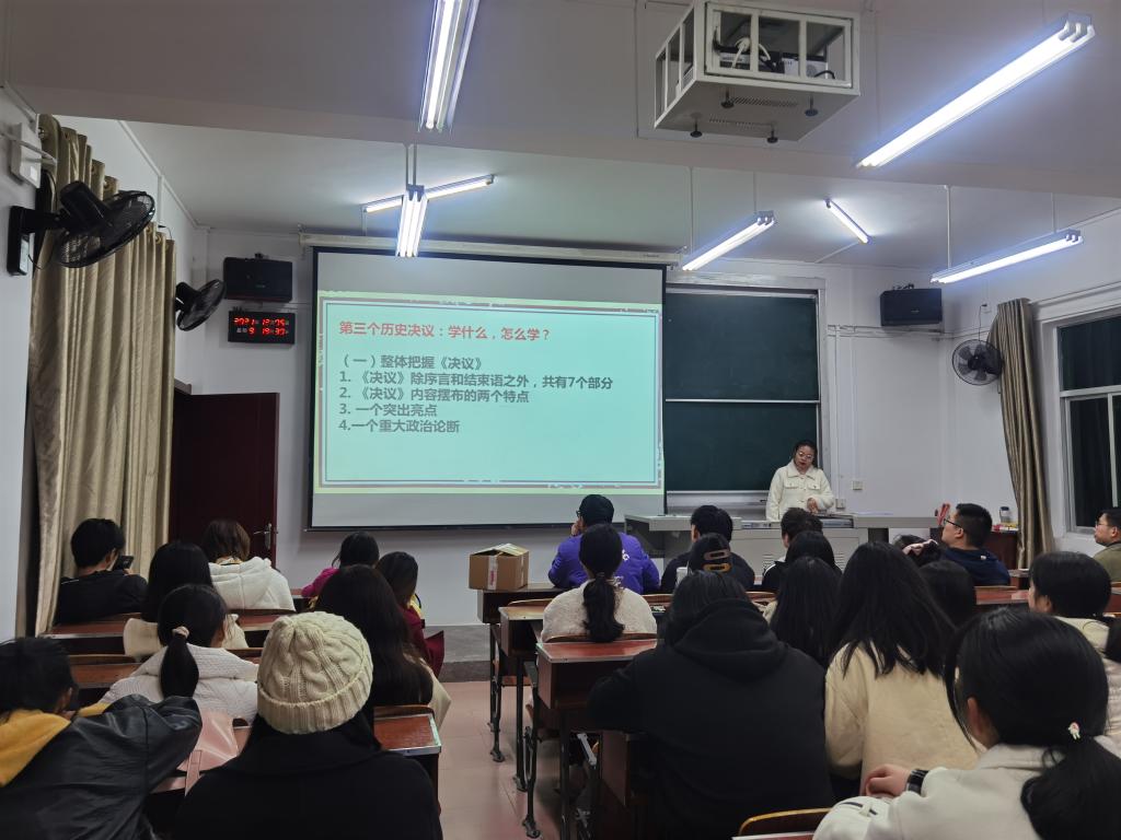 主讲人从包干到户体制创新的背景、定义以及重要性三方面展开论述。在了解完包干到户,体制创新现实背景后,主讲人带领在坐学生共同学习其定义,即其为中国农村家庭联产承包责任制的主要形式。随即进入重要性的学习,主讲人介绍到大包干”已不仅仅是简单意义上的农业生产责任制的代称,而是以其鲜明的时代特征,汇入了中国改革大潮的历史洪流之中,变成了当代中国宝贵的精神财富。学习完以上内容过后,主讲人以问答形式对此次党史故事连连讲进行学习检测。