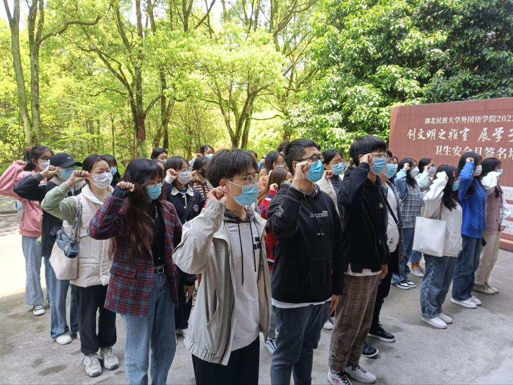 各班级代表在主持人的带领下进行宣誓,铿锵有力的声音环绕在外国语学院。