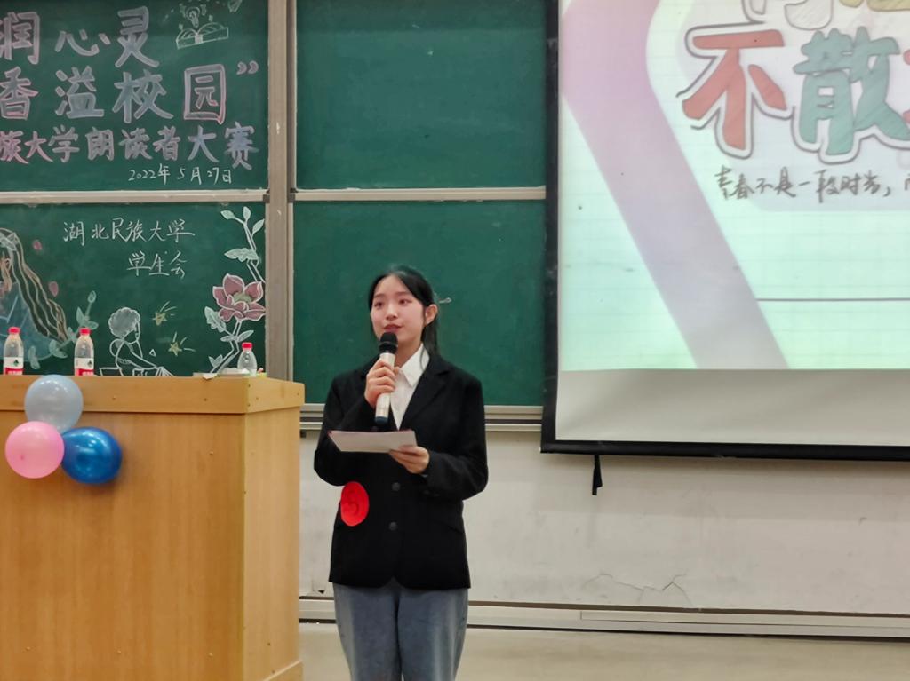 时间:2022-05-28 编辑:曾小玉 点击:本网讯(通讯员 周海艳 摄影 张艺佳)书香浸润心灵,阅读点亮人生。5月27日,我院学生会于修远楼5A207教室举办“经典润心灵,书香溢校园”朗读者决赛活动。民族学与社会学学院博士讲师廖正丽、杜鹏、彭晨,外国语学院副教授李元胜受邀出席并担任评委。