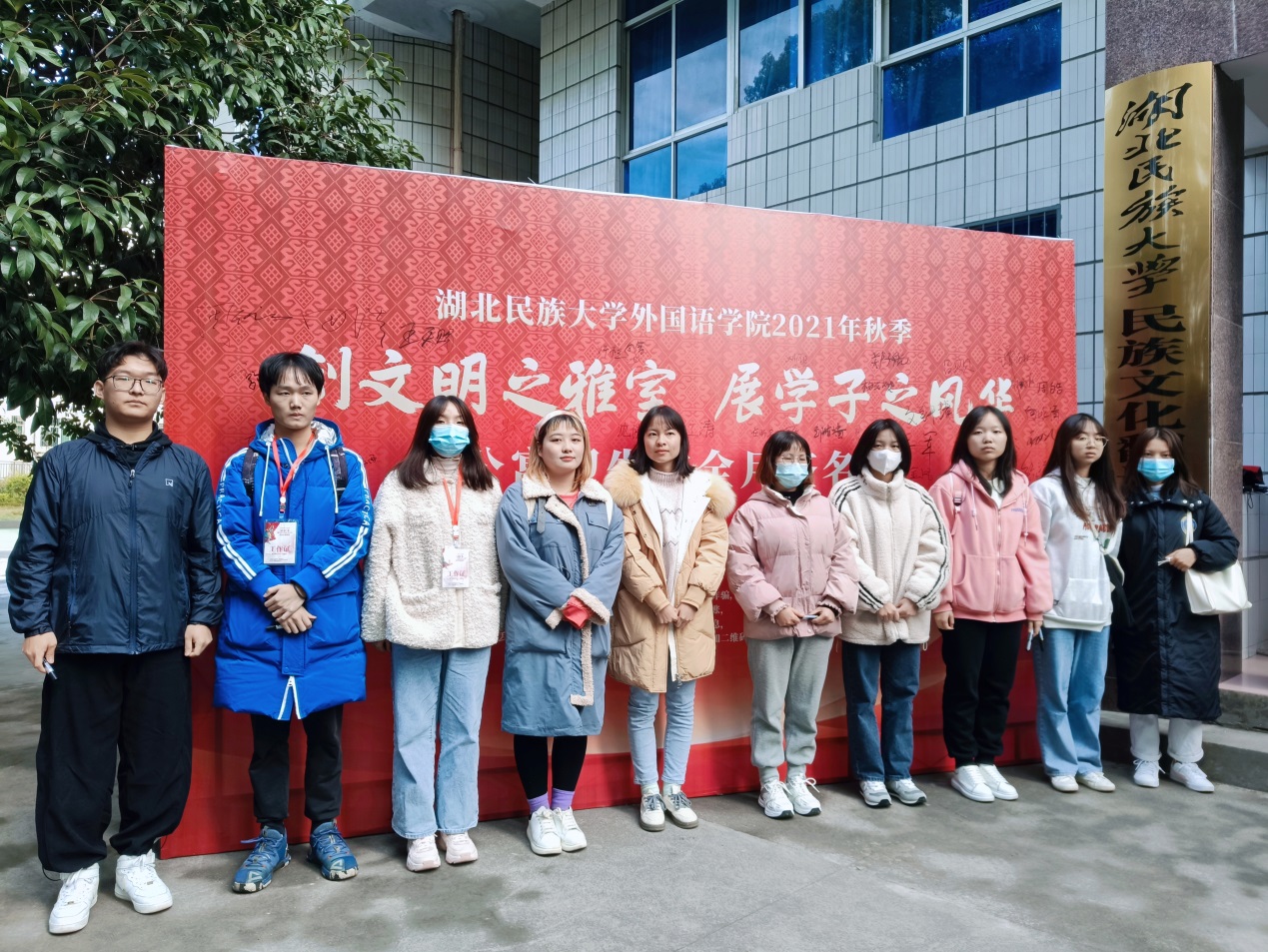 参加本次活动的领导、老师和全体学生代表在签名墙上签名并合影留念。
