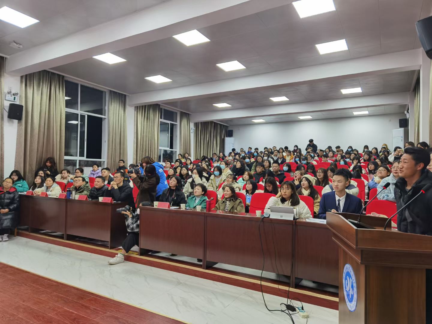 时间:2021-12-09 编辑:谭 点击:本网讯(通讯员 闫春蓉 摄影 詹佳莉 王思月 张艺佳)为展现bat365在线中国登录入口学子英语风采,丰富课余生活,提高学子英语翻译和口语能力,推动学生的全面发展,12月8日晚七点,bat365在线中国登录入口第一届“声临其境”大赛决赛在文汇楼学术报告厅拉开序幕。本次大赛由bat365在线中国登录入口翻译系承办。外国语学院副院长张婷、翻译系主任王军、翻译系教师及商务英语系教师出席了本次活动。来自不同院系的10支参赛队伍各展才能,共同为观众献上一场激情饱满的译配盛宴。