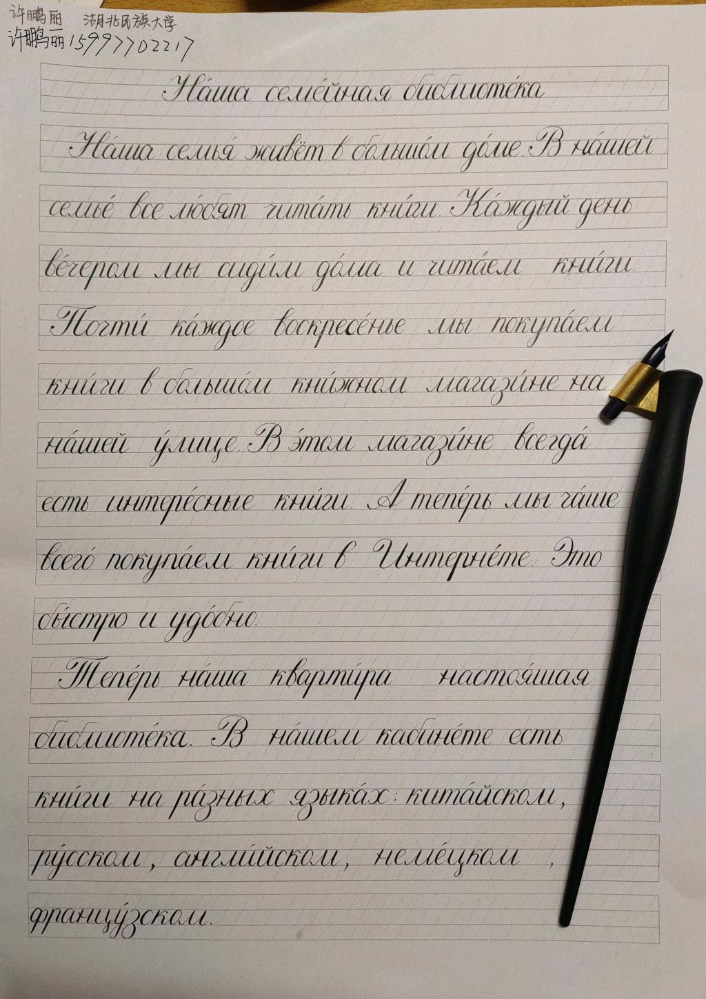 时间:2021-12-01 编辑:谭 点击:正确美观的书写是学好一门语言的重要组成部分。熟练掌握书写规则不仅有利于提高书写速度,同时也有利于日后的工作和跨文化交流。俄语是一门优美的语言,它的字母分为手写体和印刷体。印刷体整齐大方,手写体则优美流畅。对于零起点的学生来说,熟悉两种俄语字体需要一定的时间。为了激发学生学习俄语的兴趣,规范俄语书写,熟练、快速、优美地书写俄语,2021年11月11日至20日,全国大学俄语教学研究会、北京航空航天大学《大学通用俄语》慕课团队、高等教育出版社联合举办了第二届全国大学俄语书写大赛。