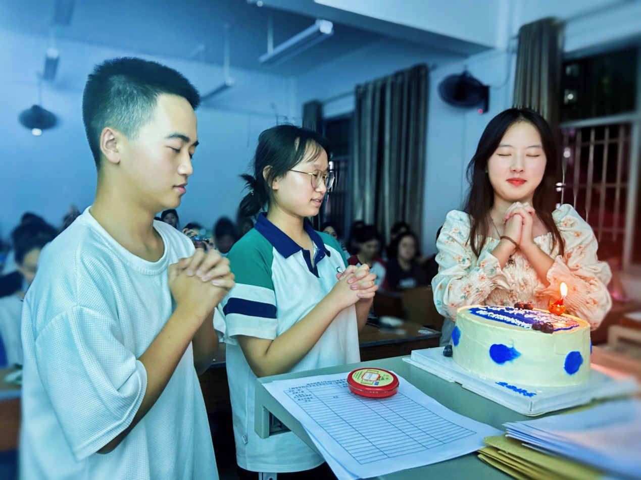当晚的晚点名是新生们在大学的第一次相聚,新生班主任和“小萌新”怀着对彼此的期待介绍自己、聊着家常,轻松愉快的环境下,两位班主任“刻意”点到几位同学的名字,并让他们走到讲台前。被点到名字的同学缓缓起身,捏着小手走向讲台,满是局促和不安。这时班主任领唱起“祝你生日快乐、祝你生日快乐……”,伴着歌声学长学姐们将早早准备好的生日蛋糕和礼物送进教室,同学们一阵欢呼。此时“蒙在鼓里”的小寿星们才意识到这是学院为他们准备的生日惊喜。在欢声笑语中,他们点燃蜡烛,许下了在bat365在线中国登录入口的第一个生日愿望。