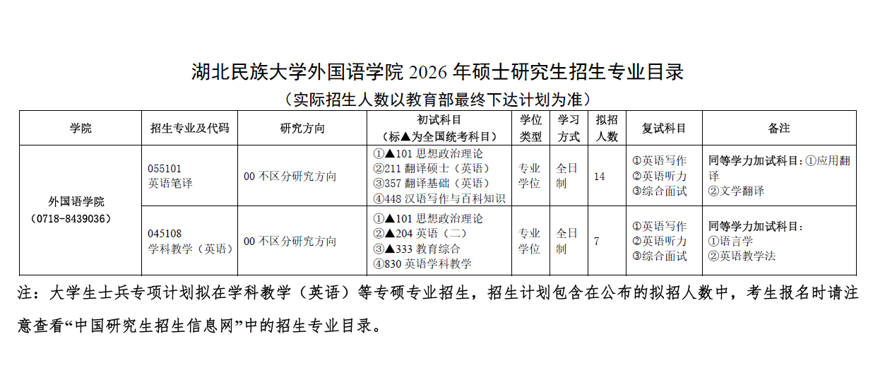 bat365在线中国登录入口外国语学院2026年硕士研究生招生专业目录