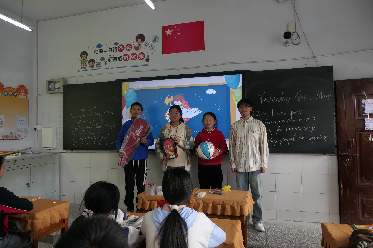 活动最后,外国语学院学生党支部代表全体党员为六年级一班和二班赠送体育用品,表达了对小朋友们的美好祝愿与期盼。