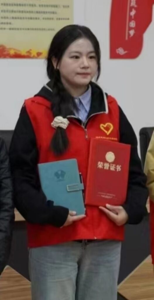 成长故事:自我进校以来,踊跃参与各类志愿服务活动。在寒冷冬天的清晨,为辛勤付出的教职工递上一杯热乎乎的姜茶;在每学期末,组织开展衣物回收,衣物堆成一座座小山;在每周四,前往恩施州图书馆,进行书籍整理工作;在闲暇时间,与恩施市小棉袄社会工作服务中心共同推进“阳光家园计划项目”,为特殊群体提供生活照料、精神慰藉等服务。从我第一次参加志愿者活动开始,我就深知志愿服务的意义。志愿服务不仅是对社会的奉献,更是对自己的提升。如今,我作为我院青年志愿者的负责人,努力组织好我院各项志愿服务活动,活动成效好,多个活动被云上恩施、荆楚网、湖北日报等官方媒体报道。