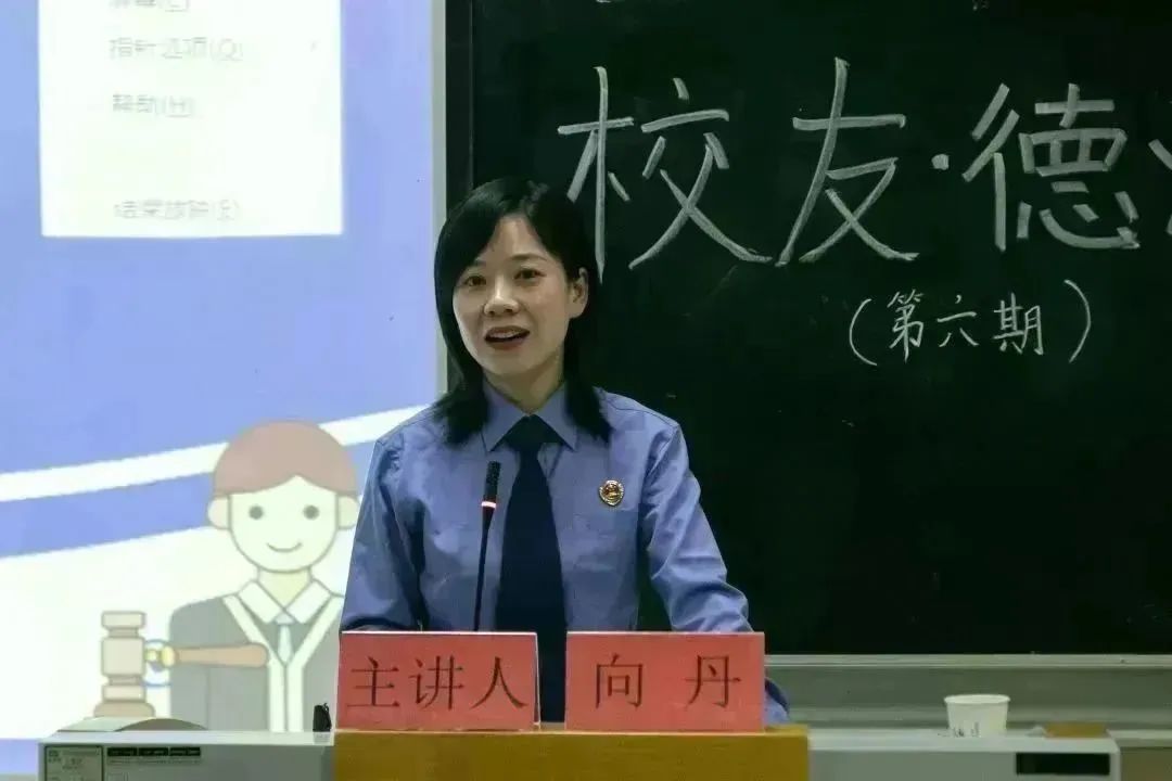 本网讯(记者 饶文婧/文 翁铭位/图)5月14日,我院于9B301教室邀请优秀校友向丹为同学们开展第六期校友·德法讲坛。恩施市人民检察院第五检察部主任向丹分享了近几年法学院检校合作资源开发与利用取得的巨大成就,与在场学生共同探讨了选择学习法律专业的初衷,引发了大家的深度思考。而后,向丹通过介绍部分实际处理过的刑事案件为同学们普及了案件处理流程,法律职业名称,内涵,特征等内容,并结合区域特性讲述了各行政机关的权利义务,进一步启发学生们思考法学专业职业发展的多样性和专业性。