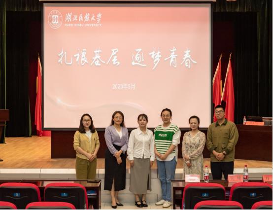 本网讯(见习记者 吕庆陆/文 记者 吴曦/图)为全面贯彻党的二十大精神,持续推进学习贯彻习近平新时代中国特色社会主义思想主题教育走深走实,把主题教育与学习习近平总书记关于青年工作重要论述结合起来,引领青年到基层和人民中去建功立业,5月19日,我院特邀请全国司法行政系统先进工作者、2023年“湖北青年五四奖章”获得者、巴东县官渡口镇司法所所长、我院2014届毕业生陈娟返回校园,在行政楼1号会议室开展“扎根基层 逐梦青春”主题报告会。我院党总支书记、院长汪燕,校团委书记吴珊,党委宣传部万力及部分学生代表参加此次报告会,万力老师担任主持人。