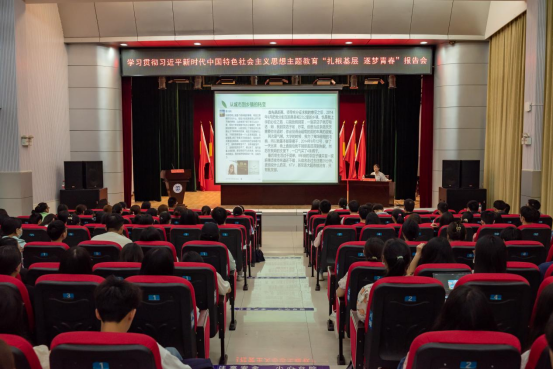 报告会上,陈娟首先分享了承载她年少梦想的民大回忆,并结合自身扎根基层的工作经历讲述“基层装扮了她的平凡青春,完成了从学校到社会、从城市到乡镇、从掌上明珠到乡干部的角色转变。”与群众一次次地真心相待和热情回应,让她真正开始懂得了如何守护基层,九年的基层工作中她为群众提供法律援助,帮助解决农民工工资发放、老人养老、重点人员就业就学等民生实事400余件,累计管理社区矫正和安置帮教对象1200余人,陈娟尽其所能地与群众交流、交心、交朋友,了解群众需求,维护他们的合法权益,成为了他们最信赖的人。陈娟表示,她看到了今天学弟学妹们的勇敢和担当,她为同是民大人而倍感骄傲,并勉励同学们生逢盛世要自信自强、不负盛世,在中华民族伟大复兴的赛道上奉献自己的青春力量,向母校交出合格的成长答卷。