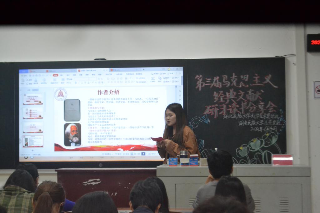 参赛选手通过研习马克思主义经典内容,分别就《资本论》的部分内容、“国家和法的实质根源于社会的物质关系或生产关系”以及“马克思对黑格尔哲学的批判”这三方面分享了自己的看法和见解,现场讨论氛围十分浓烈。最后,崔应美老师为本次活动做出点评与总结。