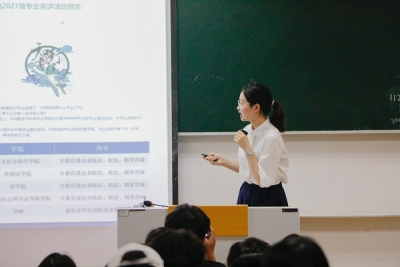 邵子恒围绕自身经历,与在座学生就法学专业学习的各个方面展开交流,还分享了自己在2022年担任北京冬奥会延庆赛区志愿者的心得体会。她结合自己的作息安排表,表示学习贵在坚持、贵在专注、贵在热爱,要带着兴趣学习才能收获更大的成就。