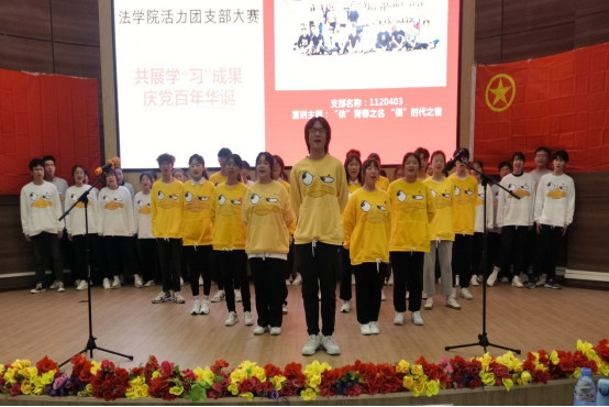 本网讯(见习记者 许帅伟 苏浩楠 喻晓凡/文 刘皇 李经玺/图)万里河山风雨急,千年英杰才情萃。为庆祝中国共产党百年华诞,共展学“习”成果,4月2日,我院于图书馆学术报告厅举办法学院活力团支部大赛。19级、20级共七个团支部参与此次比赛,文学与传媒学院团总支书记谭芸、信息与工程学院团总支书记谭俊妮、我院团总支书记阙嘉苗受邀担任此次比赛评委,党总支副书记许宗友受邀出席大赛。