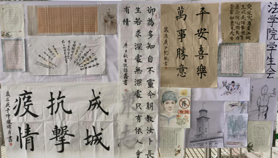 本网讯(记者 万听听 见习记者 户晴 向甜娥/文 朱子真 李经玺/图)为致敬抗疫英雄,增强同学们的爱国情怀,我院举办“致敬英雄 共克时艰”迎新书画赛,10月18日,我院学生会宣传与语言文字工作部于德智楼一楼开展迎新书画赛获奖作品展。