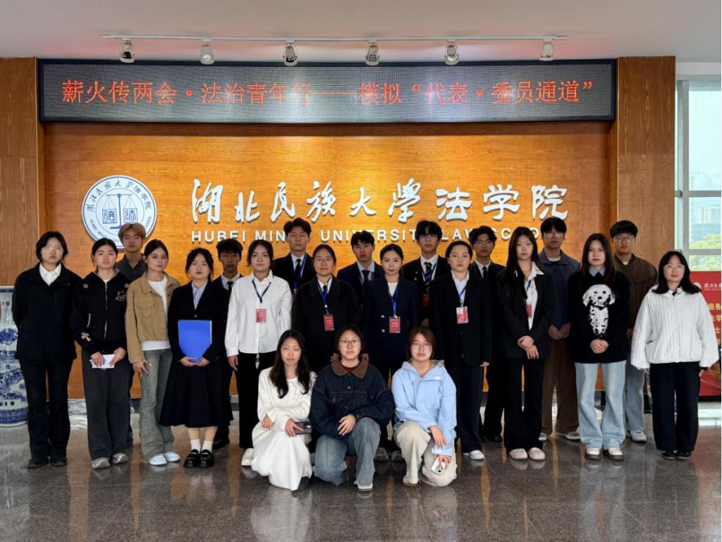 本网讯(记者 曾钰格 饶印思/文 雷承翰/图)4月2日,我院于德智楼法学院大厅举办两会模拟“代表·委员通道”活动。本次活动由我院团委宣传部主办,10名大学生化身全国人大模拟代表,聚焦社会热点议题与国家发展大局,围绕“十五五”规划建言献策,展现新时代青年的家国情怀与思辨能力。